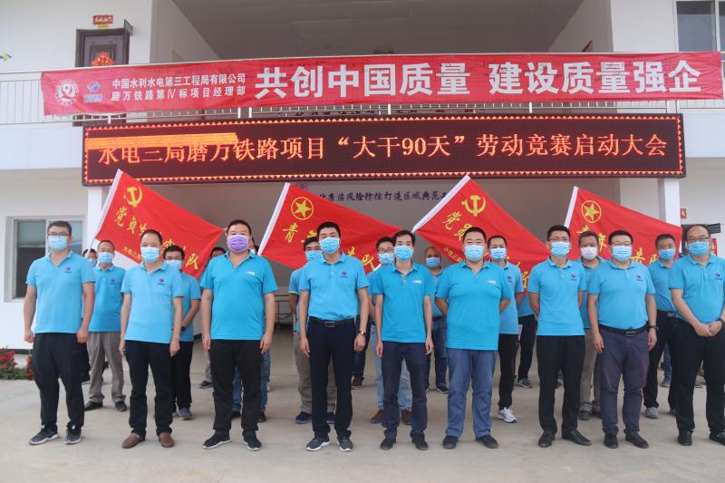 當?shù)貢r間4月30日下午,在“五一”國際勞動節(jié)來臨之際,中國電建水電三局中老鐵路項目部舉辦“大干90天”勞動競賽動員大會。這是項目部在目前國際疫情形勢嚴峻情況下落實“強隔離、零感染、兩不誤”目標又一項舉措,助力施工生產(chǎn)快速推進。