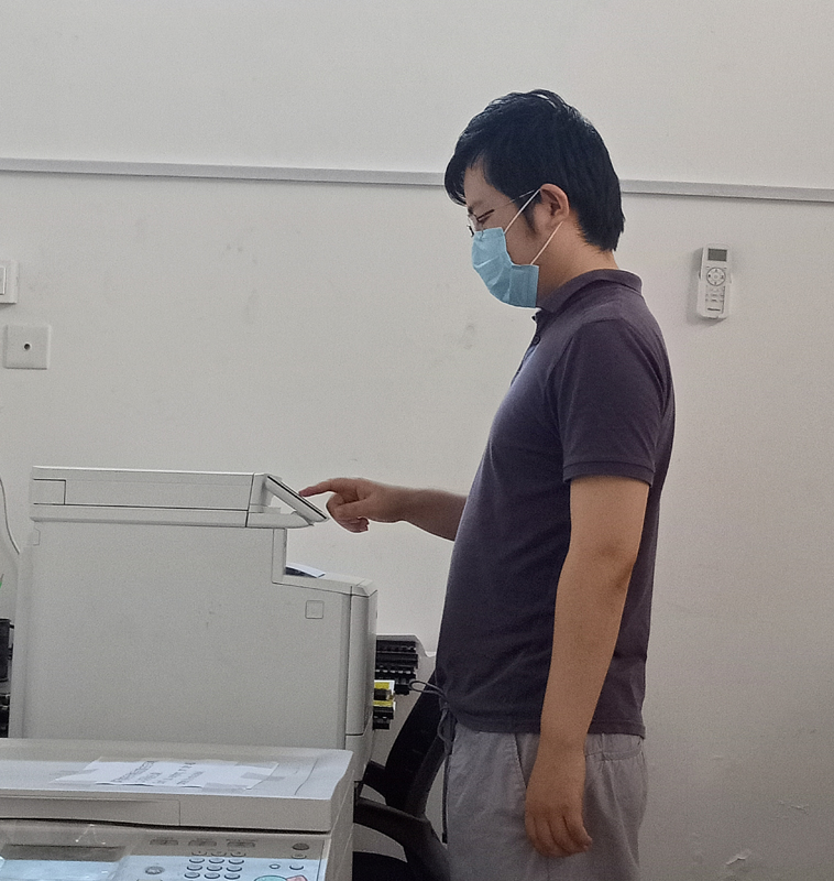 疫情期間,項目部的辦公用品壞了沒辦法找專業的修理人員,龔琳森便主動請纓承擔維修工作,無論是打印機、投影儀還是監控,對他來說似乎都不是什么難事,辦公設備的正常運轉保障了辦公室工作的正常進行,他也因此榮獲“維修大師”的稱號。