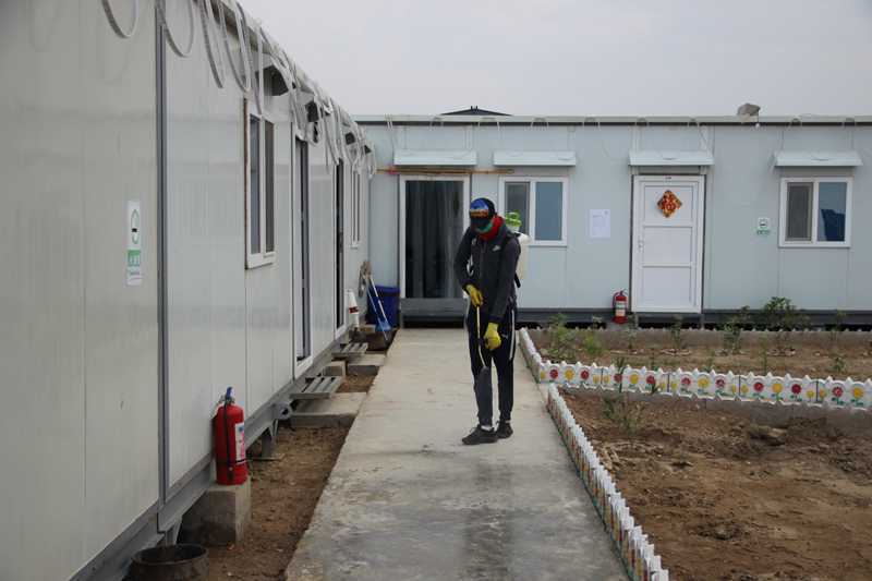 疫情伊始,伊拉克格拉夫項目部高度重視、快速反應,第一時間成立了新冠肺炎疫情防控應急領導小組,將疫情防控列為項目部重點工作,并與上級單位、業主、我國駐伊拉克大使館等部門建立聯動機制,積極進行溝通匯報,拓寬信息獲取渠道,按照指導采取應對措施。同時,項目部安排專人在當地采購了大量N95口罩、醫用洗手液、醫用酒精、消毒液等防護用品,以備日后不時之需。疫情爆發初期,項目部雖遠處海外,但不敢有絲毫懈怠與置身事外的心態,完全依照集團公司安排部署,快速拉響防疫警鐘,積極傳達防疫理念,使得防疫觀念深入人心,為后續開展防疫工作奠定了良好基礎。