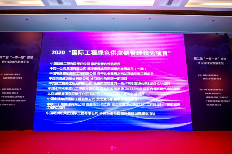 在隨后舉行的“2020國際工程綠色供應鏈管理評價活動”頒獎儀式上,中國電建申報的7個項目獲得獎項,其中烏干達卡魯瑪水電站和輸變電工程項目、馬來西亞凱德隆2×413MW級聯(lián)合循環(huán)燃氣電站項目、贊比亞下凱富峽水電站項目獲得“領先項目獎”;泰國GNP風電總承包項目、安哥拉羅安達省電氣化及入戶連接項目、摩洛哥NOOR TAFILALT 120MW太陽能電站項目和沙特阿美MGS燃氣增壓站二期擴建項目獲得“優(yōu)秀項目獎”。此外,電建國際作為本次論壇的協(xié)辦單位,獲得了“2020國際工程綠色供應鏈管理評價活動”最佳組織獎。