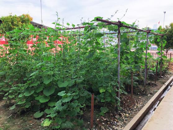 在吃的法則里,風味重于一切。蘇蘇人從來沒有把自己束縛在一張乏味的食品清單上。大廚懷著對食物的理解,在不斷的嘗試中尋求著轉化的靈感。工地的工作枯燥乏味,宿舍辦公室施工現場,每天都是三點一線。一邊要忍受著因語言不通而和監理業主造成的誤會,一邊還要協調分包商的干活消缺,一天下來往往只顧得上胡亂扒上兩口飯,至于可口與否已經不在味蕾的工作范圍之內了。大廚看在眼里急在心里,長此以往,不僅工作效率得不到保證,對員工的身心健康也是一大挑戰。他每天都在思考,如何才能讓現場員工吃得好吃的開心,還能吃出家鄉的味道。于是,蘇蘇后院的菜園子就這么悄悄地走來了。