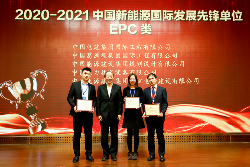 本次大會揭曉了“2020-2021中國新能源國際發展先鋒單位”的評選結果,電建國際公司榮獲“2020-2021中國新能源國際發展先鋒單位(綜合類、EPC類)”兩個獎項,充分顯示了中國電建在海外新能源領域所取得的突出成績。